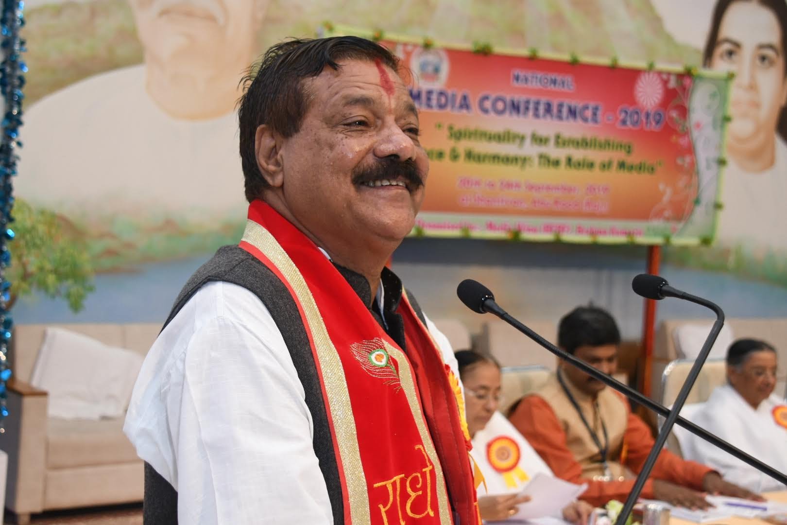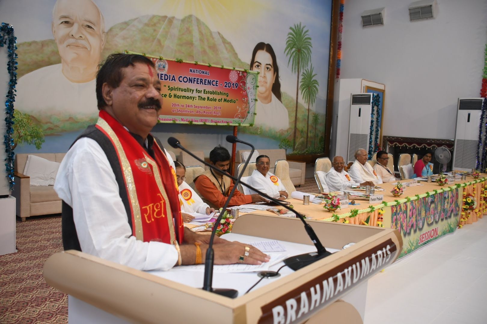 भोपाल से आये वरिष्ठ पत्रकार प्रो. कमल दीक्षित, महाराष्ट्र वन चैनल के कार्यकारी संपादक संदीप चौहान, इंडियन फैडरेशन आफ वर्किंग जर्नलिस्ट के प्रधान के.विक्रम राव आदि वक्ताओं ने कहा कि शांति और सदभाव के लिये अध्यात्मिकता से जुडकर मीडिया महान भूमिका निभा सकता है। समारोह का उदघाटन दीप जलाकर किया गया। नटराजन नृत्यशाला बैंगलोर के निर्देशक राजू भाई के नेतृत्व में कलाकारों ने शिव पिता का झंडा फहर रहा है शीर्षक गीत पर प्रभावशाली नृत्य प्रस्तुत किया। इससे पूर्व आयोजित स्वागत सत्र का शुभारंभ मूल रूप से आस्ट्रेलिया निवासी डेविड भाई के बांसुरी वादन से हुआ। वक्ताओं में मीडिया प्रभाग के उपाध्यक्ष आत्मप्रकाश भाई, पीस आफ माईंड टीवी के ऐंकर विवेक भाई, खेल प्रभाग की उपाध्यक्ष शशि बहन, राष्ट्रीय संयोजक सुशांत भाई, अखिल भारतीय लघु समाचार पत्र संघ के अध्यक्ष शिव शंकर त्रिपाठी, मुख्यालय संयोजक शांतनू भाई शामिल थे। मुख्य वक्तव्य में मुन्नी बहन ने उम्मीद जताई कि सम्मेलन में भाग लेने वाले मीडियाकर्मी नकारात्मकता त्याग कर स्व: परिवर्तन से विश्व परिवर्तन का संकल्प लेकर जायेंगे। उन्होंने संस्था के उत्थान में निवर्तमान मुख्य प्रशासिका दादी प्रकाशमनी के अमूल्य योगदान की विस्तार से चर्चा की।