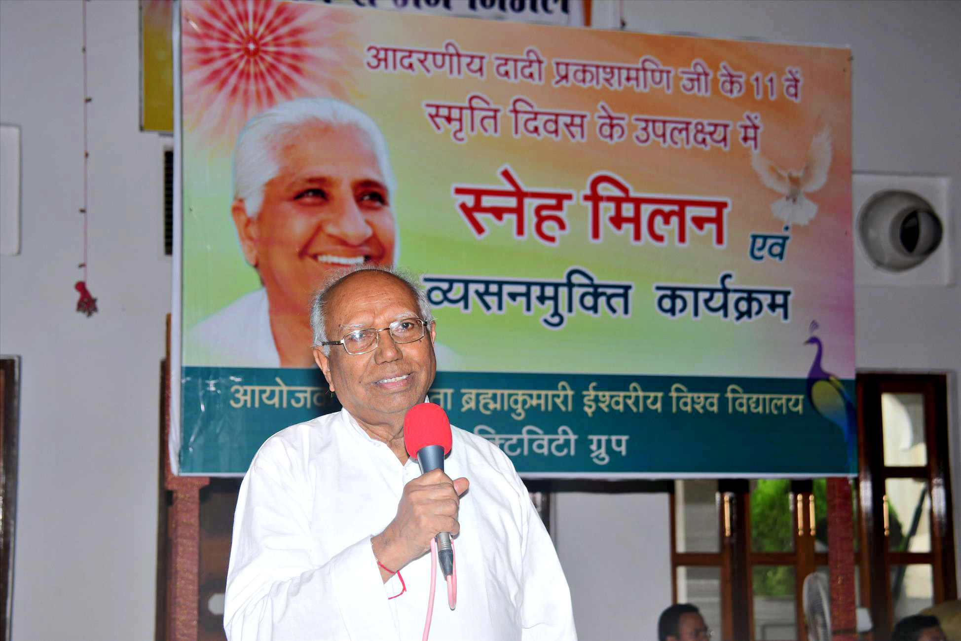 BK Sheilu, Dr. BK Savita,  BK Bharat, BK Komal addressed the laboures. Lastly everyone paid their hearty homage to Dadi Prakash Maniji at her memorial, Prakash Sthambh, and took a pledge to be free from addiction.