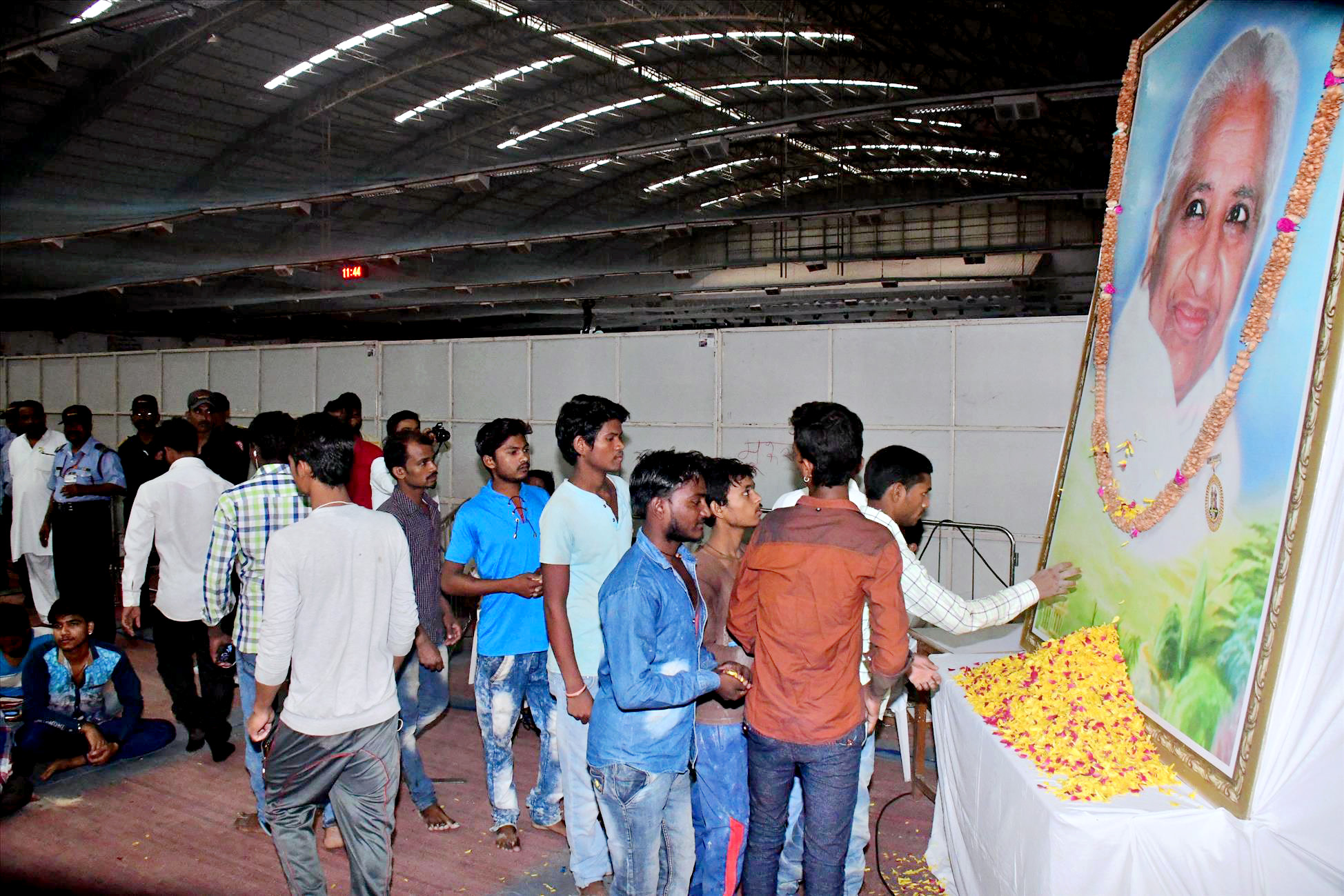 Mt. Abu / Abu Road (Raj.) On the occasion  of 11th Ascension Anniversary of Dadi Prakashmani, Former Chief of the Brahma Kumaris Organisation, a cordial get-together with about 3,000 working laborers was held at Head Quarters of the Brahma Kumaris at Abu Road and Mount Abu.